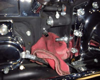 Oil Cooler Fan Setup One thing that people ask about, is what to do about keeping their bike cool when they're stuck in traffic. They say, "An oil cooler alone won't work because there's no air flowing through the cooler." One solution is to mount fans on the oil cooler to pull air through even when you're standing still. Chuck Davis has blazed a trail in the heat of Texas and provided pictures to boot. The fans are ordinary ball bearing computer fans, and Chuck reports that he hasn't had a problem with rain or weather (I think he used the term "gully washer describing the rain he's ridden through). Currently, the fans are on a switch, but he plans to have them automatically operating with a thermostat soon. Below are pix that include the installation process. Clicking on the thumbnail will open the full size picture in a separate window. |